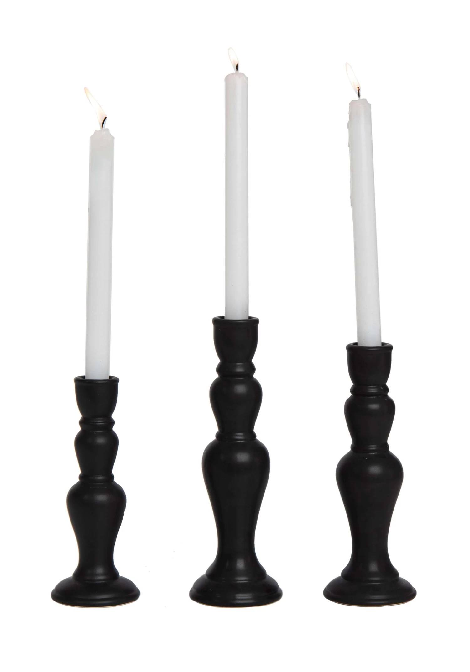 10″ Matte Black Ceramic Candlestick Set
