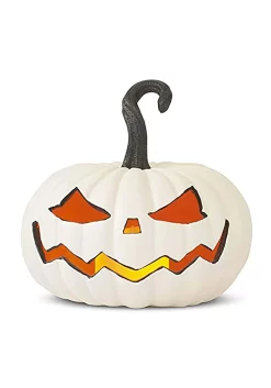Don’t settle for little! Get yourself the festive fruit you long for without the hassle of carving and cleaning when you add this 20 Inch Extra Large Light Up Pumpkin. This happy Halloween decoration stands 20” tall but is made from lightweight resin, so you won’t need to worry about lugging a massive pumpkin home. That charming smile comes pre-carved on its glossy exterior, which means there’s no mess to deal with. And in place of too many tiny tealights attempting to light its giant grin, you need only install the proper batteries and power it on!