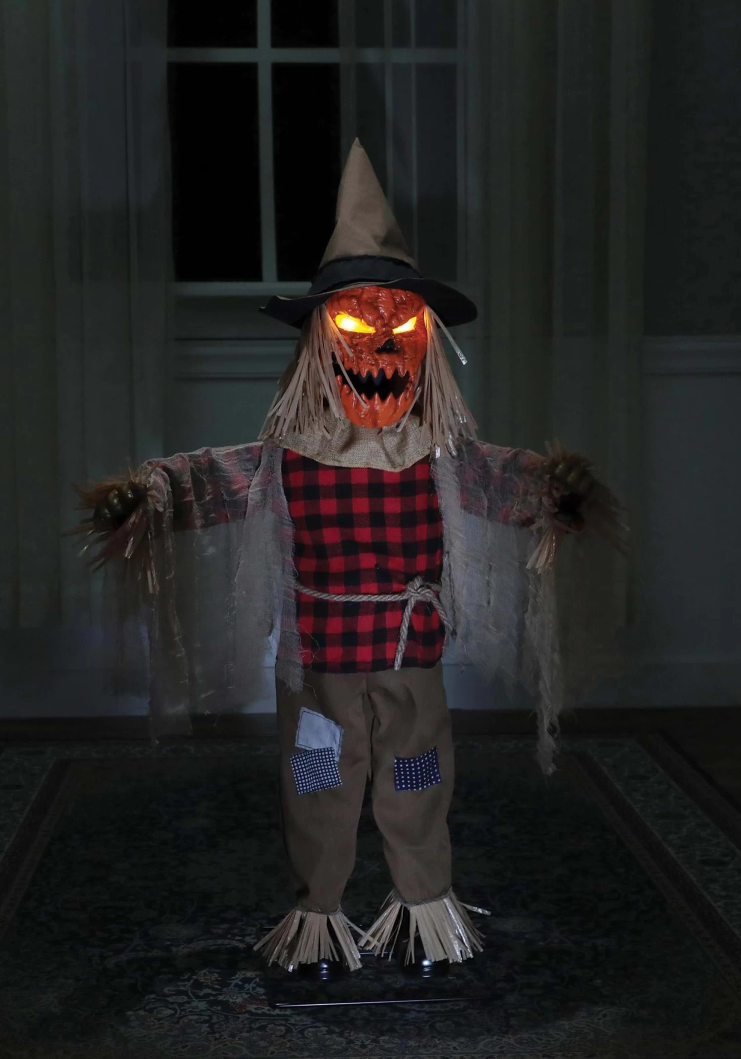 We here at Halloweencostumes.com only recruit the cream of the crop to be our props, which is why we are so excited to offer this 36” Twitching Scarecrow Animated Prop. The patched clothing and classic witch’s hat make this costumed prop both thematic and interesting. You will love the raggedy look, which is part of what makes this prop such high quality! If you are looking for a spooky scarecrow prop, this is the coolest animated one you will find!