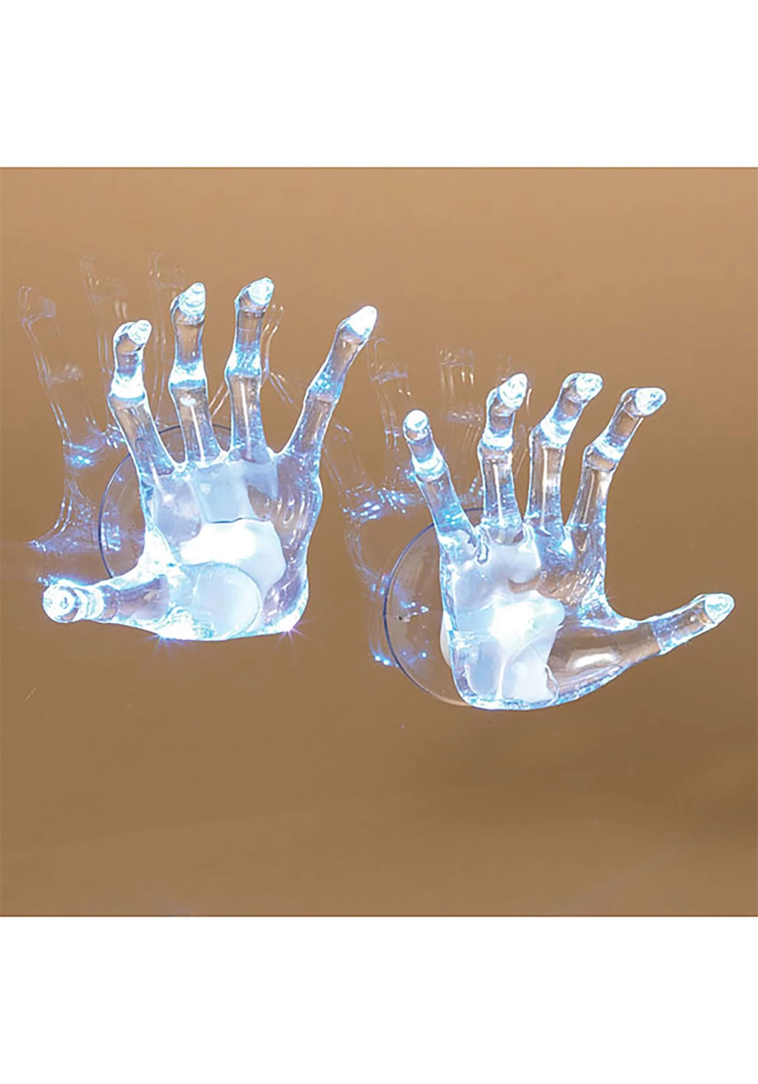 Let this 4″ Lighted Spectral Hand w/Suction Cup give you a hand with decorating for Halloween! Uniquely spooky and fun, the molded decoration is realistically sized and made of clear material. It’s shaped like a hand with slightly curved fingers. Interior lights give it an eerie glow. Use the attached suction cup to adhere it to a flat surface.Â