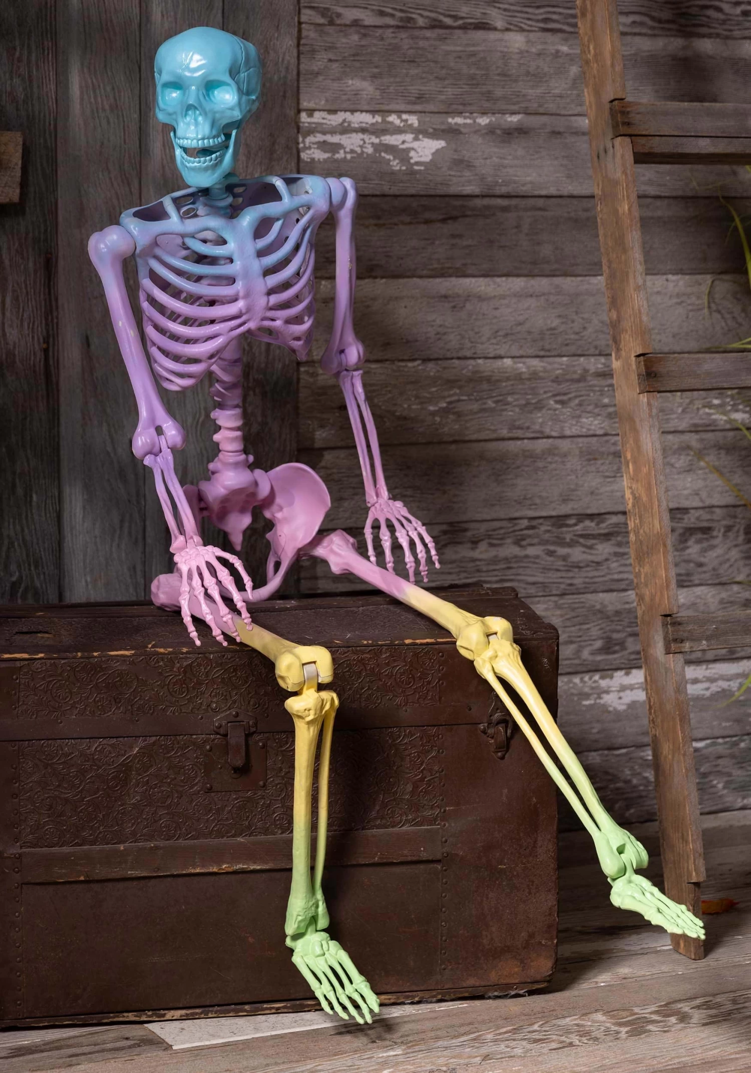 Who said Halloween had to be completely gloomy? Not us, that’s for sure! This lovely skeleton has realistically molded bones that shape into a classic human skeleton… with one key difference. This skeleton features pastel colors of pink, orange, yellow, green, blue, and lavender.