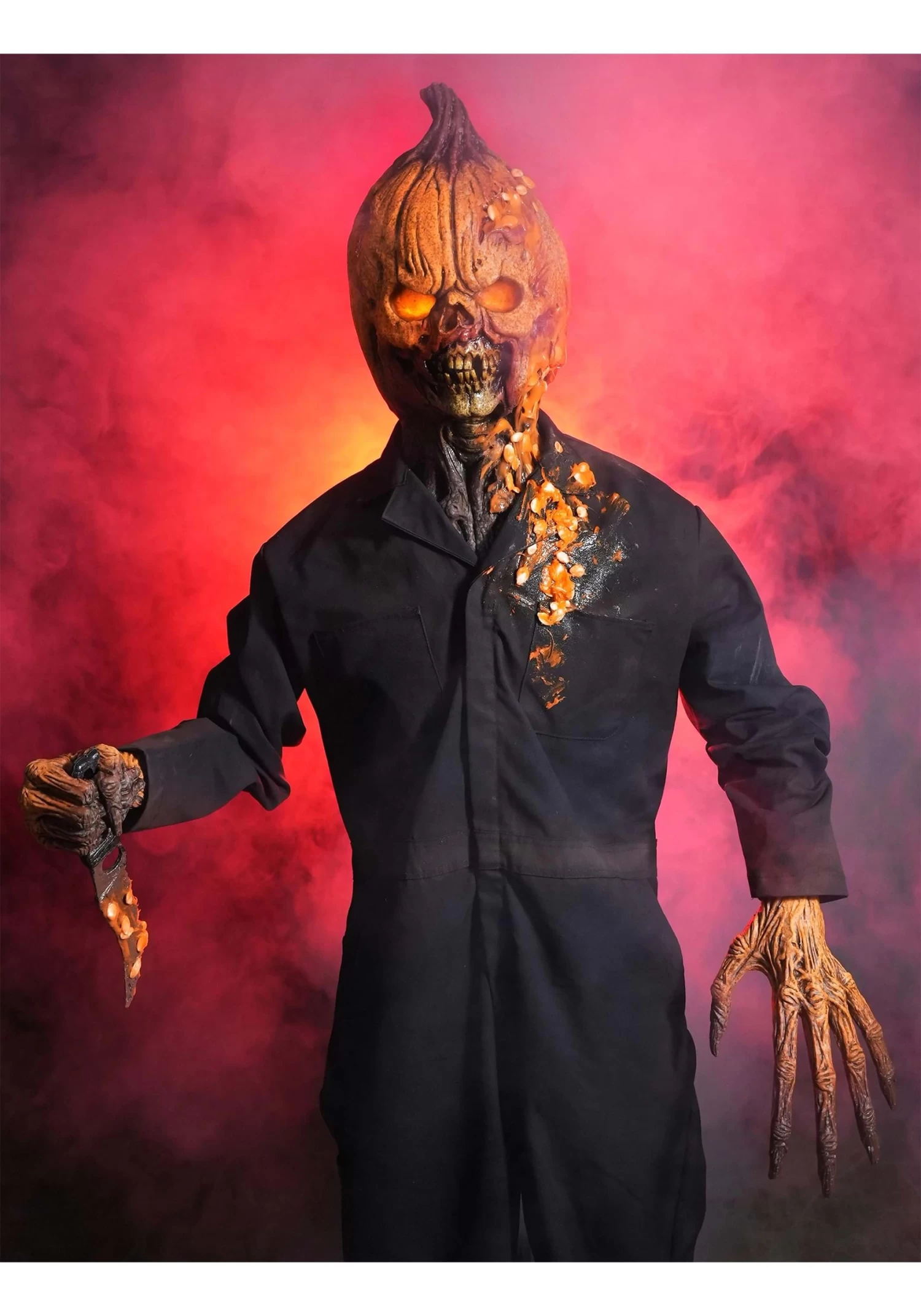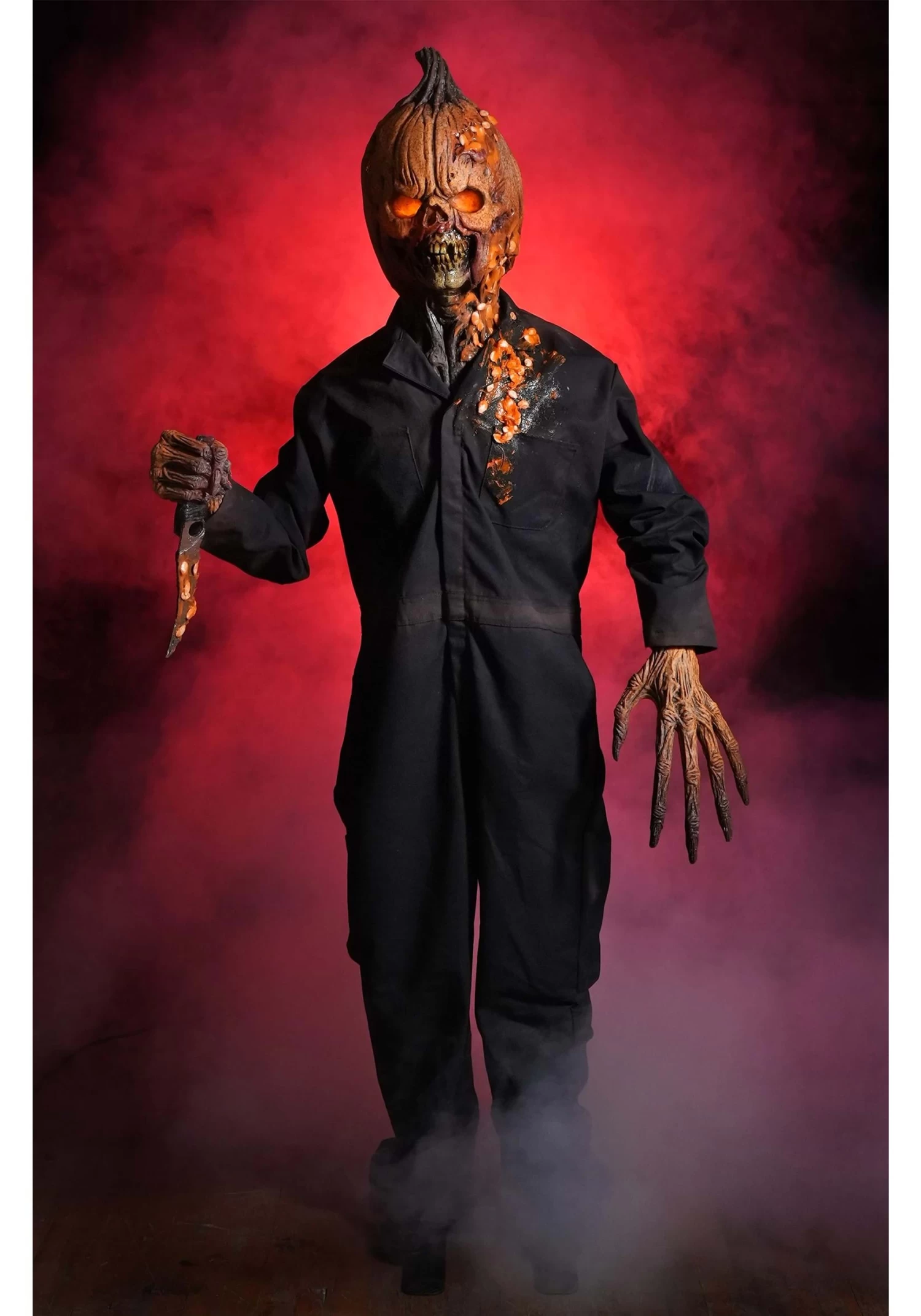 Add some creepy and unique flair to your Halloween celebrations with this 6ft Jack is Back Prop! The lifelike figure wears a jumpsuit and its head is designed to look like a skull wearing a pumpkin. Its eyes light up and it holds a faux weapon.Â