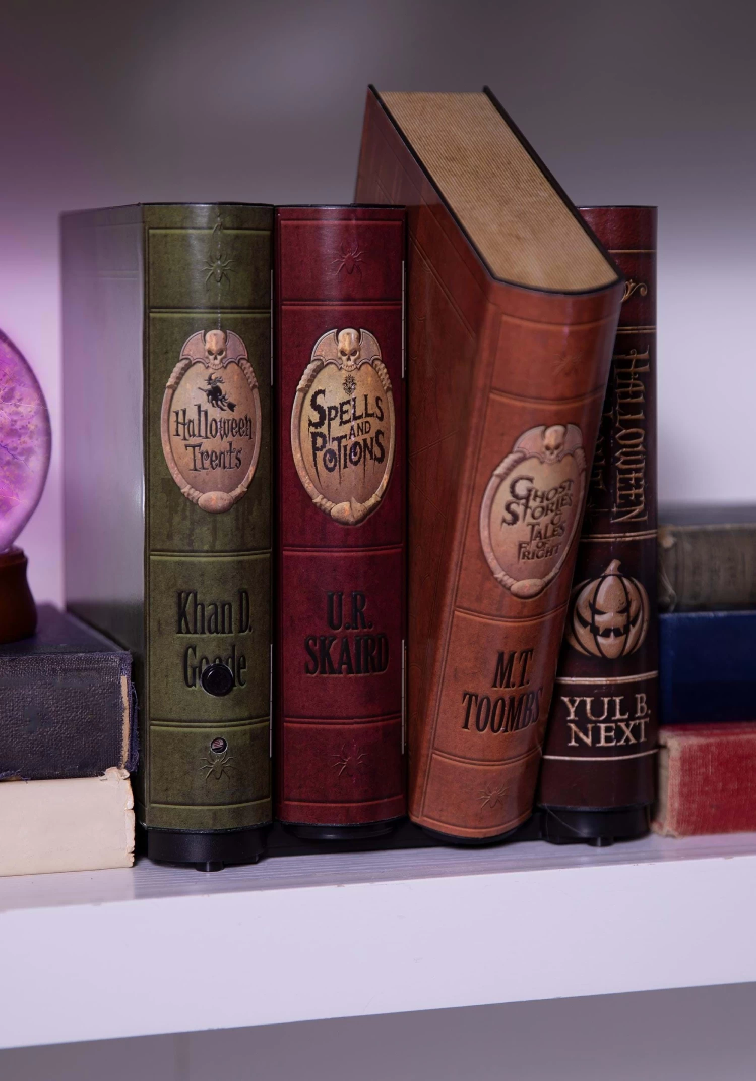 Assuming that your house isn’t already teeming with spirits, most ghost story fans start looking for ways to make their homes creepier come autumn. After all, you’re in a spooky mood. Why shouldn’t everyone else who comes into your home sympathize? These unassuming moving books are sure to get the spines of both young and old Halloween revelers tingling! It’s time to turn a page in your Halloween decor and get interactive! Running on AA batteries, these books move about whenever anyone comes too close. Anyone who gets too scared ought to start judging books by their covers! With hilarious author pun names, these books will be trick and a treat even when they’re turned off!