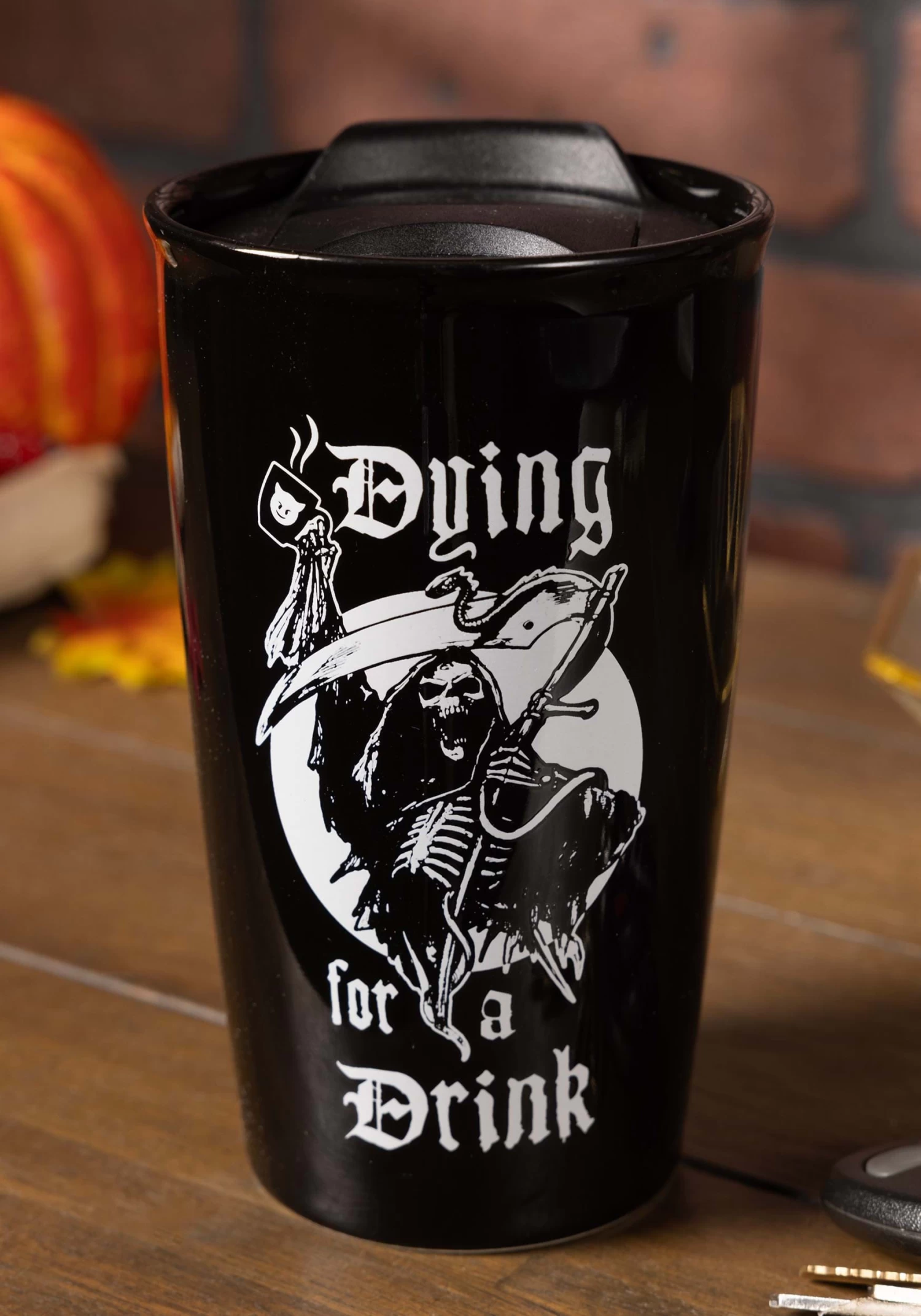 No matter what job you have, you get more done after you’ve had your coffee. Mr. Grim Reaper is no exception! He works around the clock, and unfortunately people tend to freak out if he decides to pop into his local coffeehouse for a double-espresso Raspberry Cinnamon Latte. It’s better for everybody if he just fills up at home. This Dying for a Drink Double Walled Travel Mug accurately describes the feeling you get when only your favorite beverage will do to make you feel alive. A secure lid and a hilarious front graphic add to the fun.Â