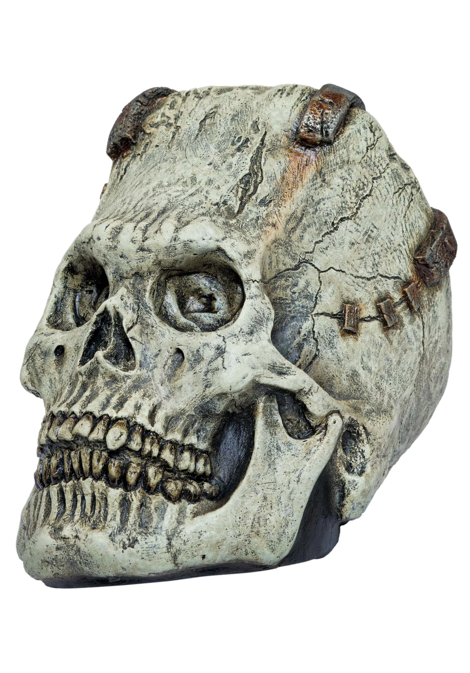 Fans of classic monsters will love displaying this Franky Skull Prop! (Not to worry – no vengeful spirits are included.) The molded skull has staple details attached across its molded cracks.Â