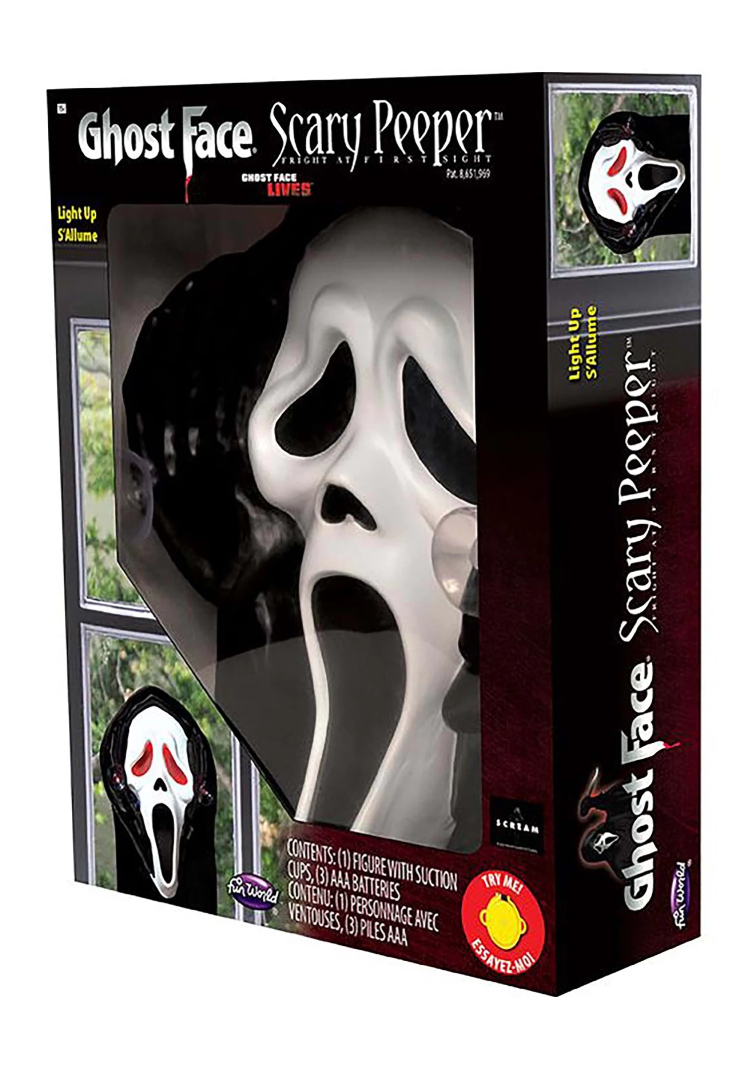 He’s right outside! This Ghost Face Window Peeper Decoration makes a great decoration as well as a hilarious practical joke. Simply stick the suction cups to a flat glass surface to make it look like the killer himself is peering inside.Â