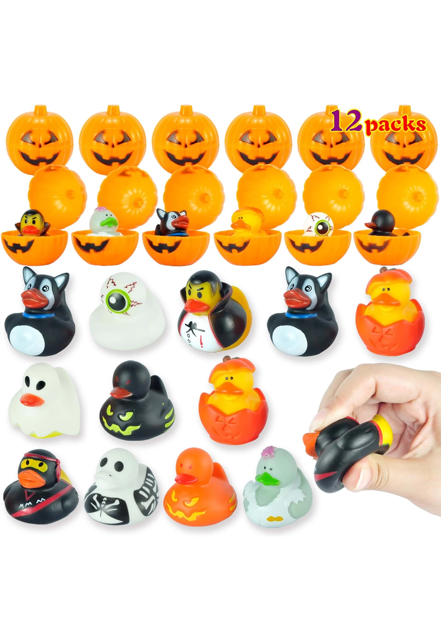 Normally, ducks hatch out of eggs. But these Halloween-loving ducks hatch out of pumpkins instead! Bring home a Prefilled Pumpkin with Rubber Duck 12-Pack, and you’ll have double the décor this spooky season. Each duck is dressed up in a Halloween costume, and fits inside the included plastic pumpkins!