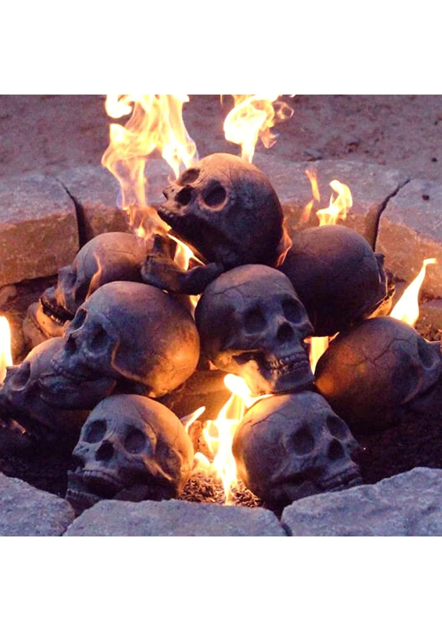 Conjure the perfect decorative touch for your sinister scene with Skull Fire Logs. Whether you purchase 1 or 100 of these clever stoneware skulls, you’re sure to spark more than a few reactions at your next gathering. Each unique skull measures around 6” H x 7” W x 7” D making it just slightly smaller than an average adult human’s. Place the fireproof decoration in your fireplace or outdoor firepit to give your décor a macabre feel. As your fire burns and the skulls stick around, it’ll look as though you’ve pulled off your own bit of sorcery.